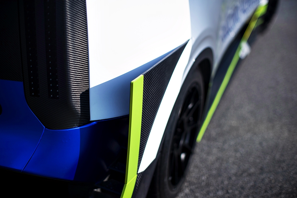 - Rekabentuk belakang radikal dengan potongan ke dalam dan sirip menghala ke spoiler belakang bagi menjana daya mendap dan lebih cengkaman di litar.