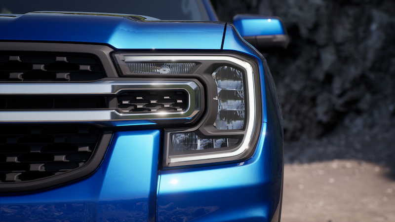 - Tarikan utama bahagian depan ialah lampu utama bentuk C yang kini dipasangkan lampu matriks (varian WildTrak) dengan fungsi lampu suluh tinggi automatik (AHB).