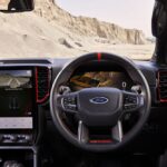 Bahagian dalam, papan pemuka Ranger Raptor ibarat kereta elektrik dengan kluster instrumen 12.4 inci digital sepenuhnya dan unit infotainment skrin sentuh 12 inci.