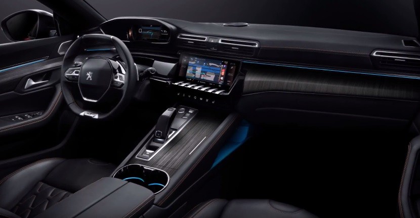 Peugeot 508 menampilkan kemasan kayu, lapisan kulit, aluminium dan satin. Seperti mana kereta mewah lain, ambien dalam kabin menggunakan lampu LED. Kerja memarkir disempurnakan sistem bantuan parkir (PA). Trenkuasa 508 menawarkan beberapa varian enjin pengecas turbo dan diesel, terdiri daripada 1.2L dan 1.6L petrol serta enjin 1.5L dan 2.0L.