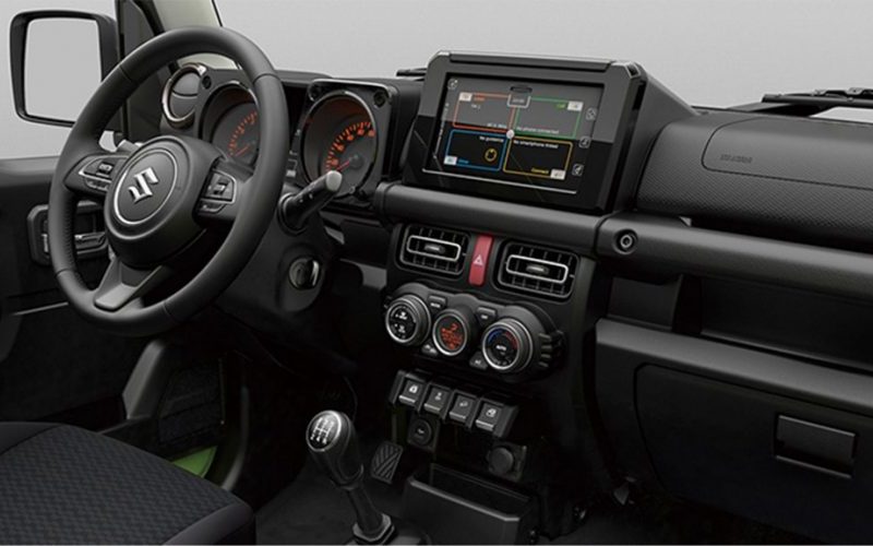 - 3 warna dua tona – Kinetic Yellow (kuning), Jimny Brisk Blue Metallic (biru), Chiffon Ivory Metallic (putih)