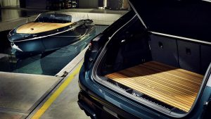 SUV ini telah diubah suai oleh Porsche Exclusive Manufaktur untuk menyerlahkan persamaan reka bentuk antara bot dan kereta tersebut menerusi perincian pada bahagian luaran dan dalaman.