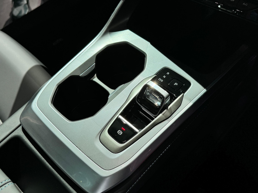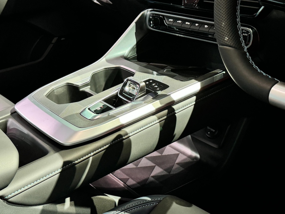 - Tombol gear kristal dengan sudut konsol butang kawalan penyaman udara, termasuk corong penyaman udara dan skrin unit infotainment sedikit miring ke arah pemandu untuk akses lebih mudah ketika memandu.