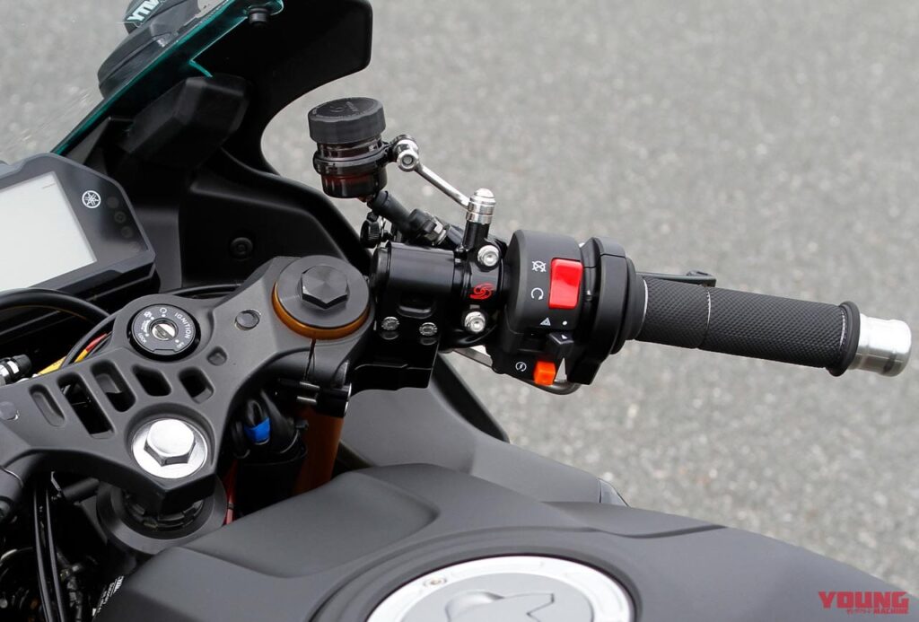 Peg kaki dan hos merah ialah prototaip. Set fork dan monoshock daripada Hyper Pro berharga 159,500 yen (RM6,270). Unit hendal terpisah pula menyumbang kepada gaya tunggangan sporty, dijual pada harga 22,000 yen (RM860), manakala terotel dan suis kanan dibuat syarikat sama.