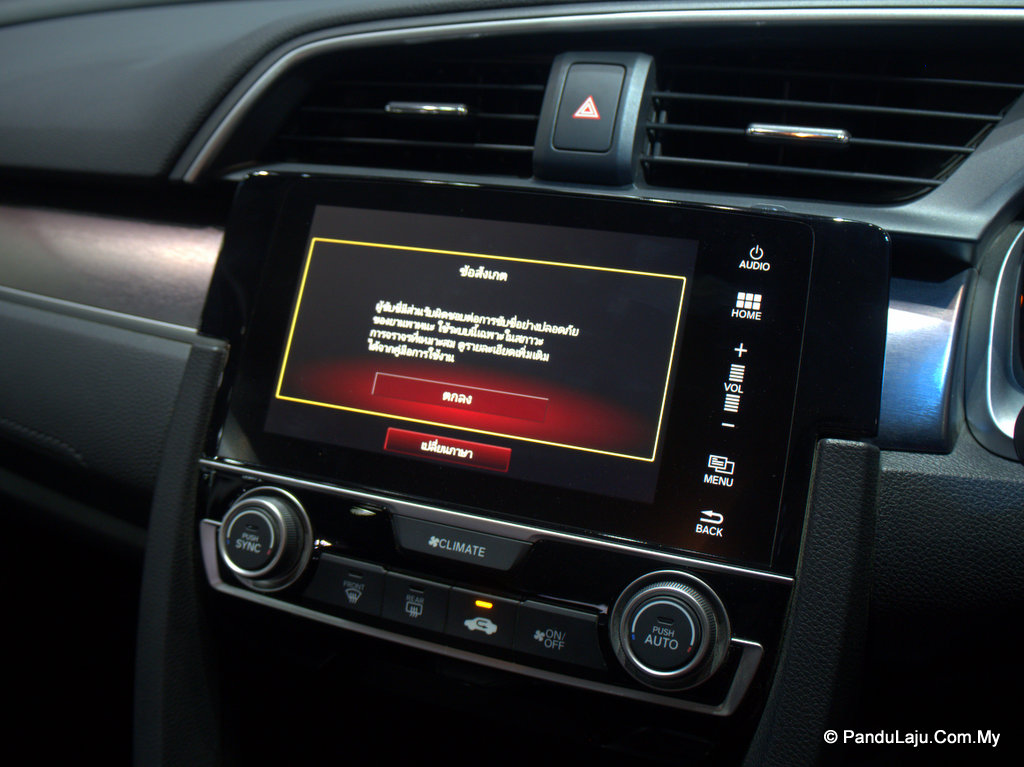 Ruangan dalaman juga tidak kurang hebatn. Honda Civic generasi ke-10 versi Thailand ini hadir bersama sistem kemasukan tanpa kunci, butang mula-hidup, skrin sesentuh, brek parkir elektronik dan Amaran Titik Buta, iaitu kamera dengan sensor sisi sama ciri seperti model Accord.