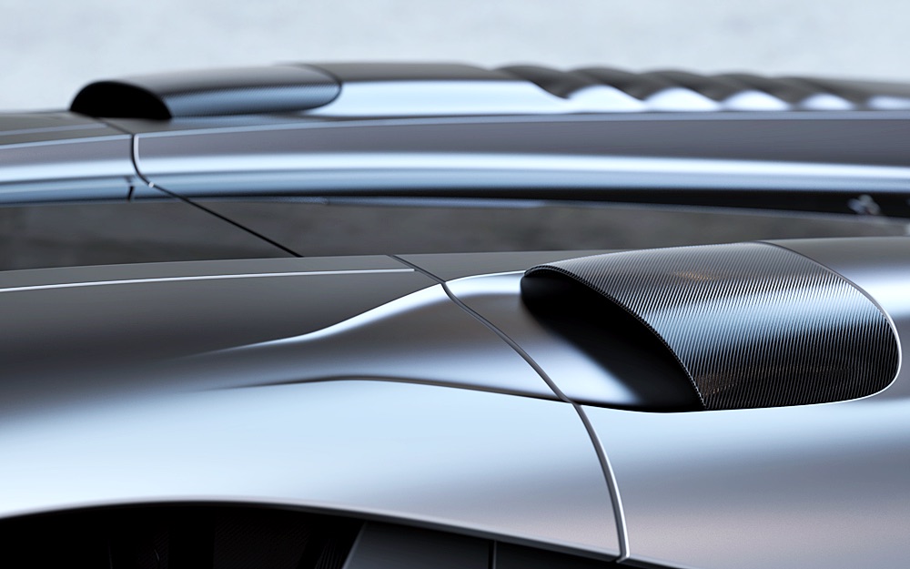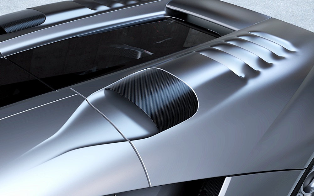 Bahagian atas badan GP1 direka dengan pengaruh era keemasan rekabentuk baji yang dihasilkan sepenuhnya daripada lakaran kosong bekas pereka Bugatti dan Rimac, Angel Guerra.