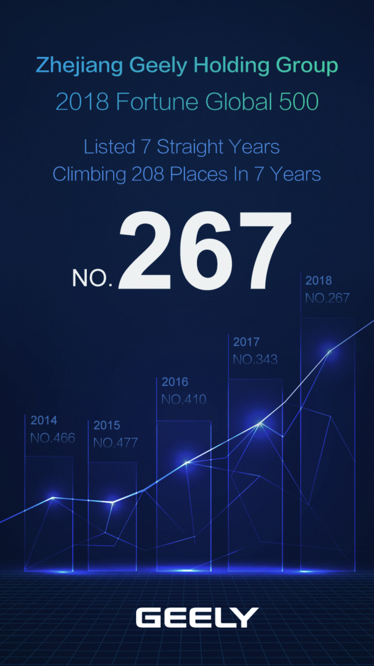 Kedudukan tersebut ialah tahun ketujuh berturut-turut Geely tersenarai dalam Fortune Global 500.