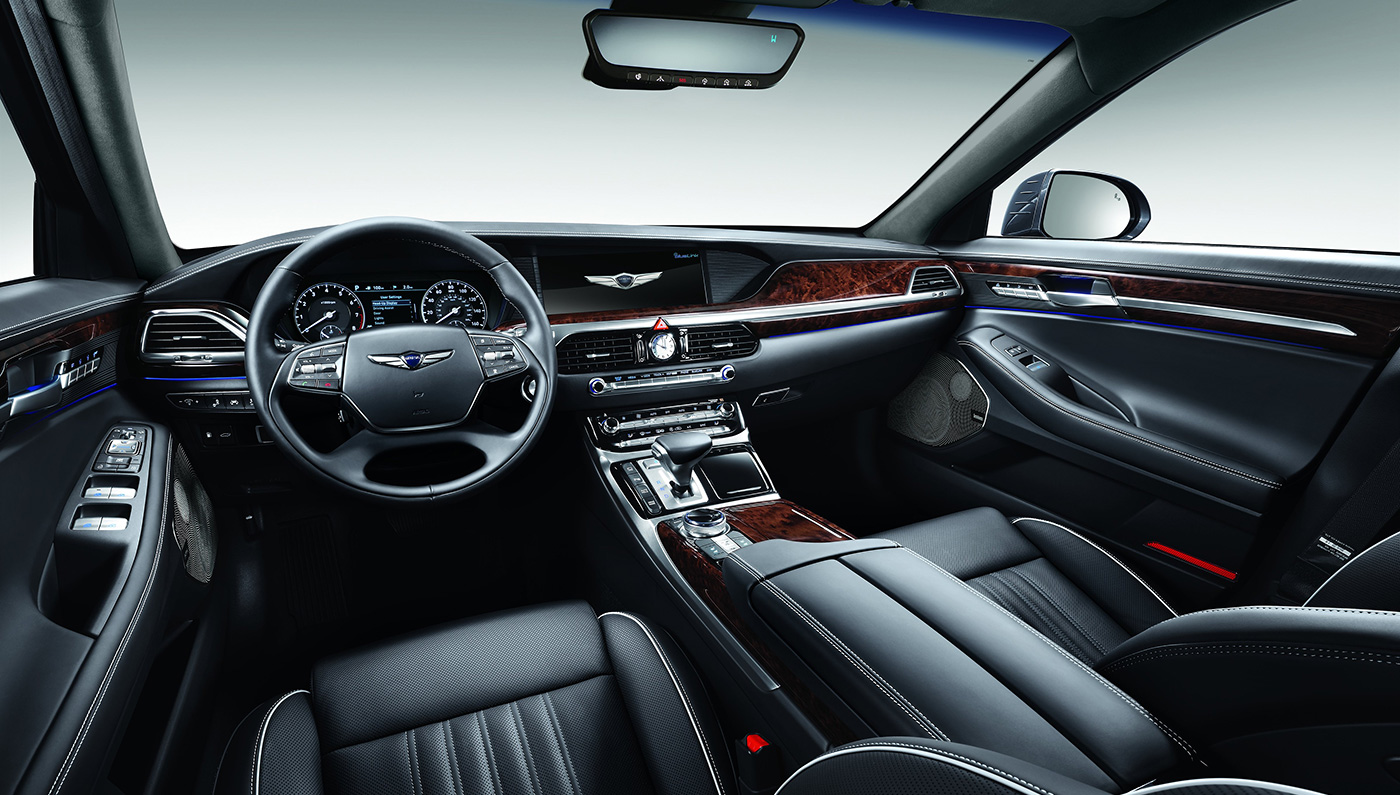 Genesis G90 tampil dengan pelbagai fitur terkini seperti skrin paparan antara terbesar dalam kelas dan sistem bunyi premium, Lexicon berserta 17 pembesar suara, termasuk sebuah subwufer 10 inci.