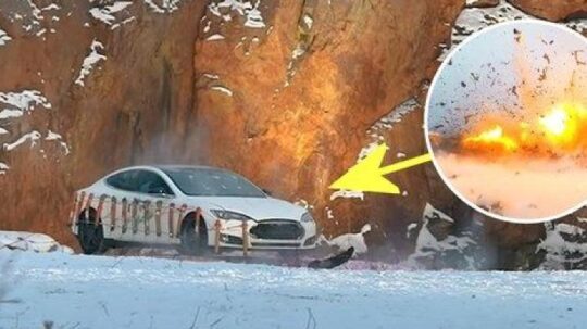 Tanpa berfikir panjang dia pergi menyerahkan keretanya kepada syarikat pakar letupan Pommijätkät yang kemudian membawa ke satu kawasan kuari untuk melakukan kerja letupan. Lebih dramatik, mereka turut memasukkan boneka, yang biasa digunakan dalam ujian perlanggaran kenderaan, ke dalam Model S itu yang siap dipakaikan helmet, jaket sejuk tebal dan dilekatkan foto wajah Elon Musk (pengasas Tesla).