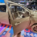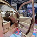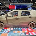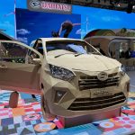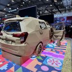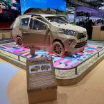 ASTRA Daihatsu Indonesia (Daihatsu Indonesia) mempamerkan model replika minivan Daihatsu Sigra yang diperbuat daripada kadbod untuk tatapan pelawat Pameran Auto Antarabangsa Gaikindo (GIIAS) 2024.