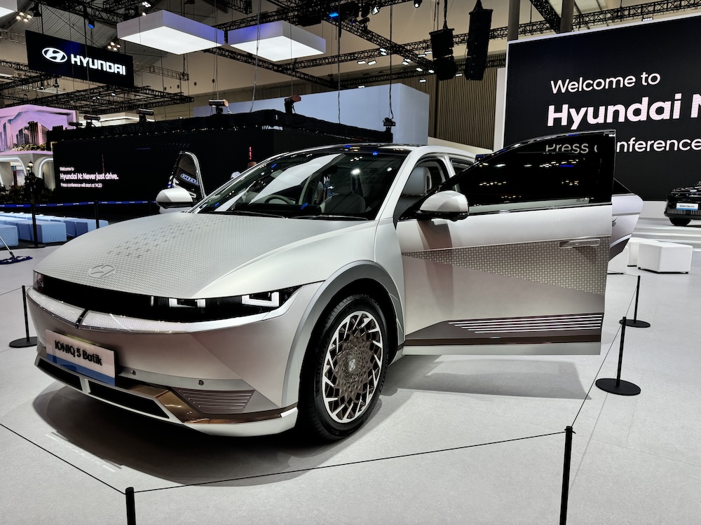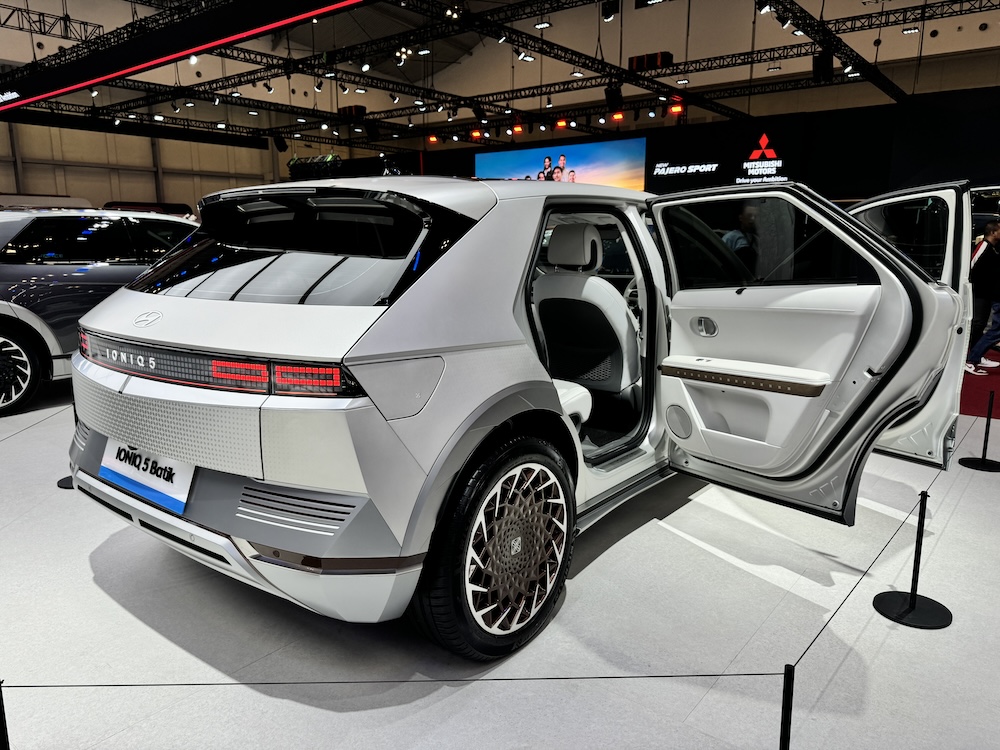 HYUNDAI Mobil Indonesia (Hyundai Indonesia) menampilkan varian IONIQ 5 Batik Edition yang dihasilkan dalam kuantiti terhad di Pameran Auto Antarabangsa Indonesia GAIKINDO (GIIAS) 2024.