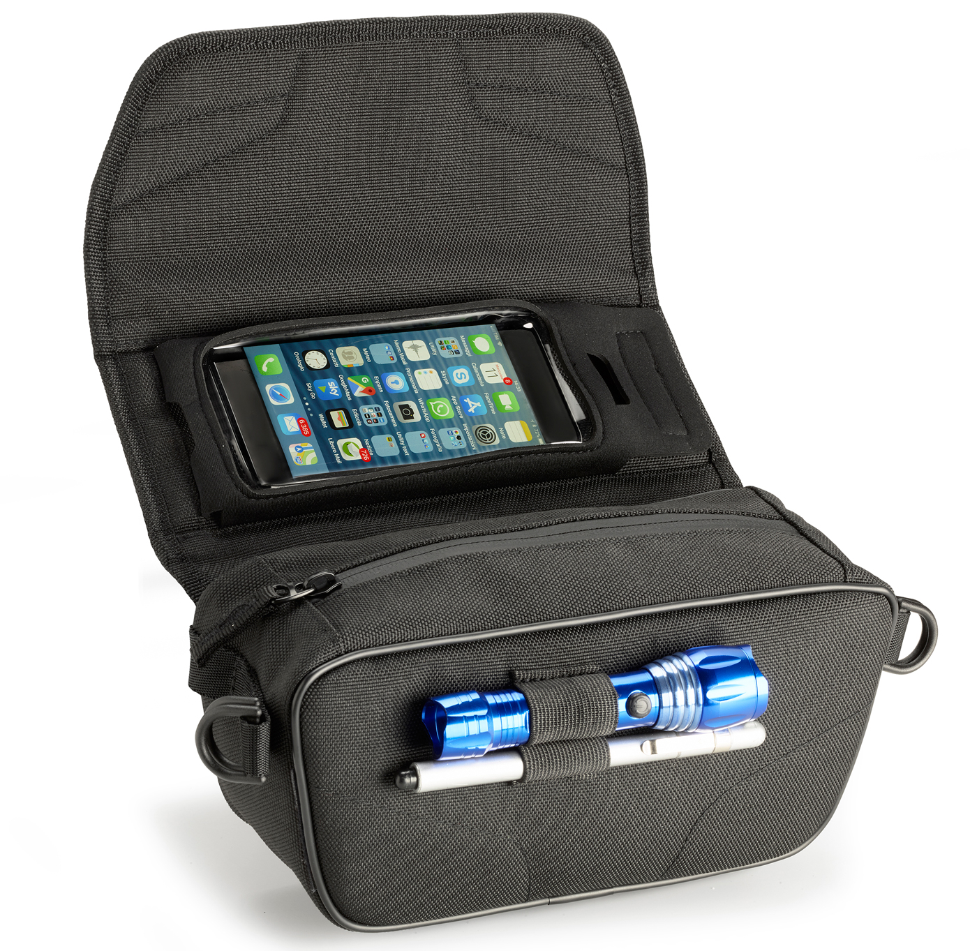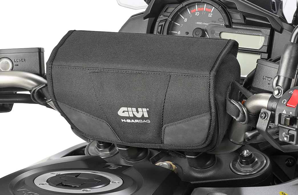 GIVI mendedahkan cara baru menyimpan barangan kecil ketika menunggang yang mudah dicapai apabila diperlukan. Beg bar hendal GIVI H-Barbag T516 bertali memuatkan banyak kompartment kecil untuk meletakkan gula-gula, pen, telefon pintar, cermin mata, kopiah dan barangan kecil lain.