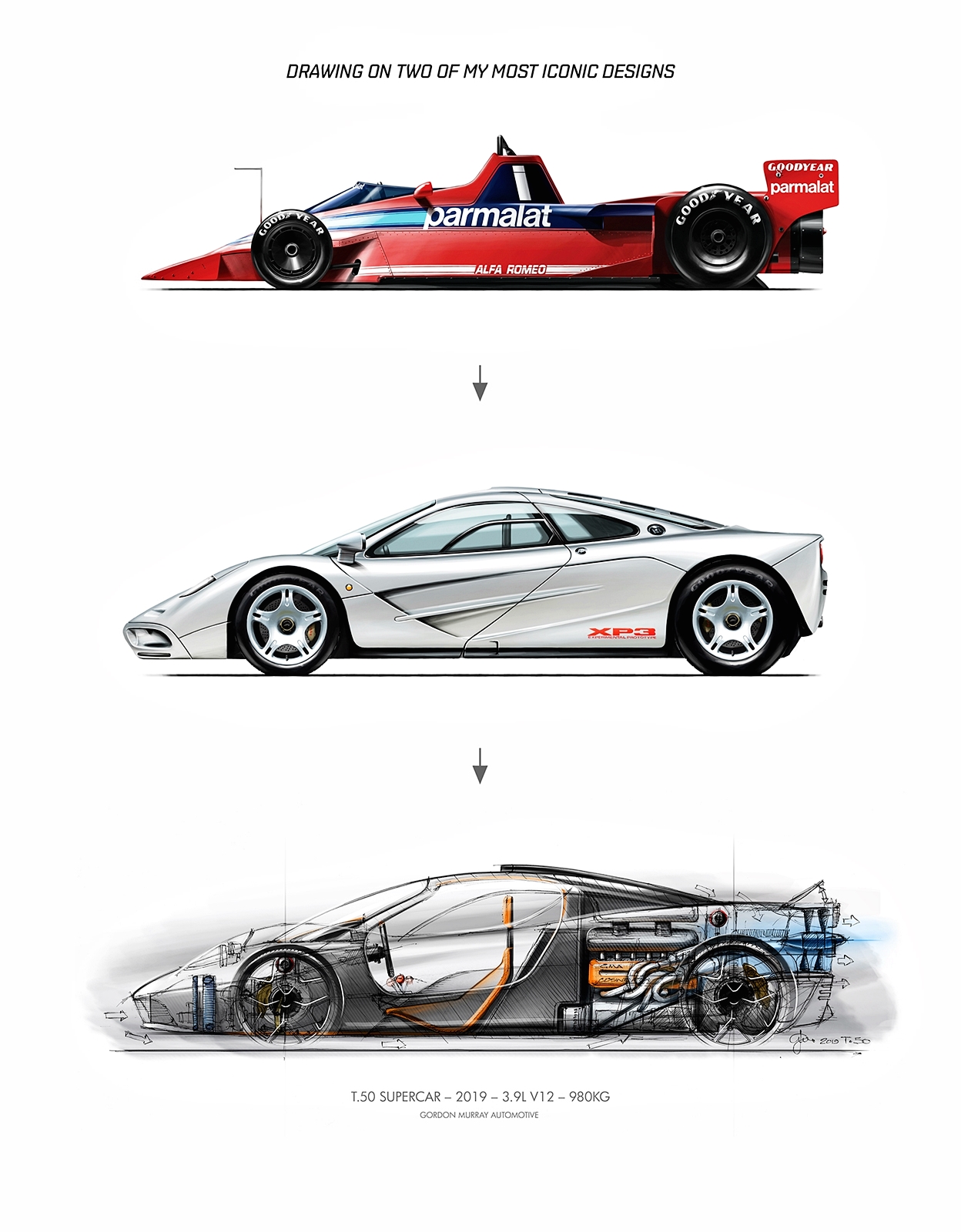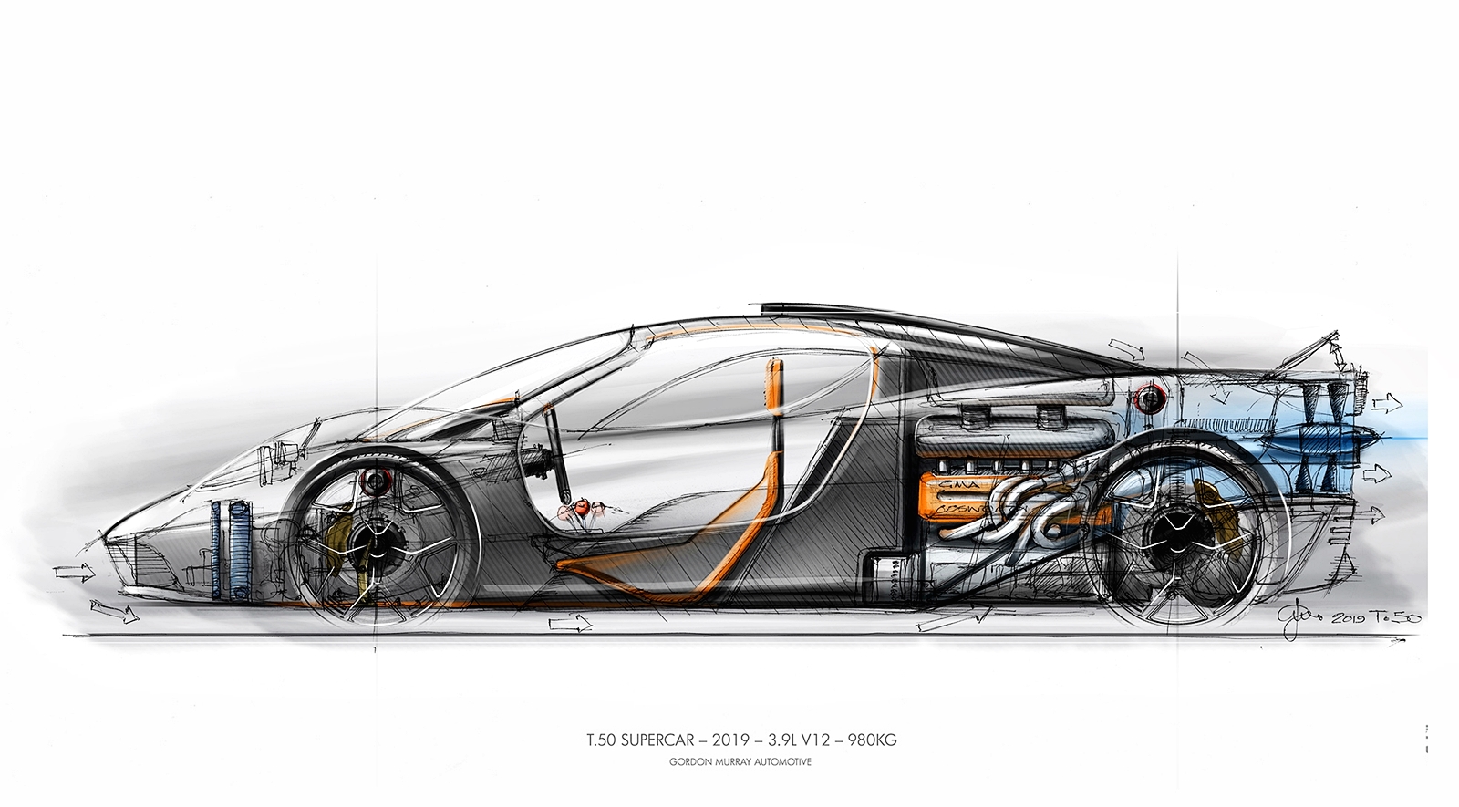 - Pelan kejuruteraan, gaya luaran dan dalaman dihasilkan sendiri Gordon Murray Design.