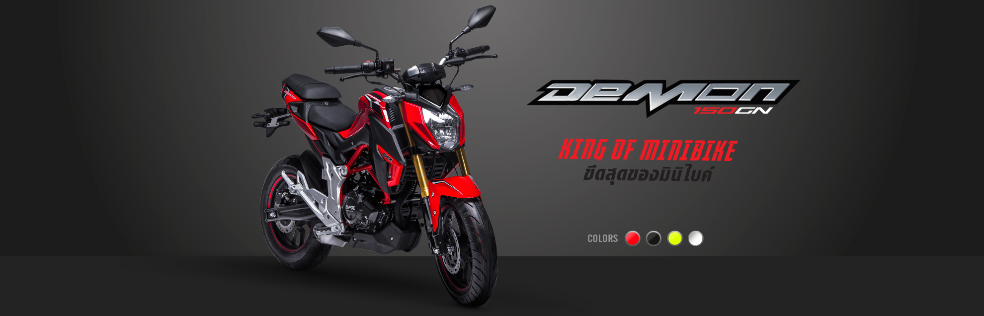 Dilancarkan terlebih dahulu di Thailand pada harga ฿58,500 (RM7,340), Demon 150GN khabarnya akan ditawarkan dalam julat harga RM9,000, tidak termasuk GST. Selain rekabentuk streetfighter mini (tapi bukan seperti rekaan ‘Ducati Streetfighter mini’) dan kotak gear 5 kelajuan, spesifikasi ‘King of Mini Bike’ itu adalah setara versi fairing penuh, Demon 150GR dengan kelajuan maksimum sekitar 125kmj.
