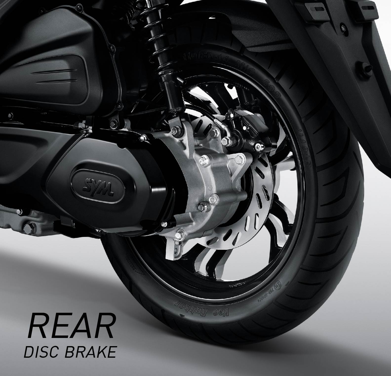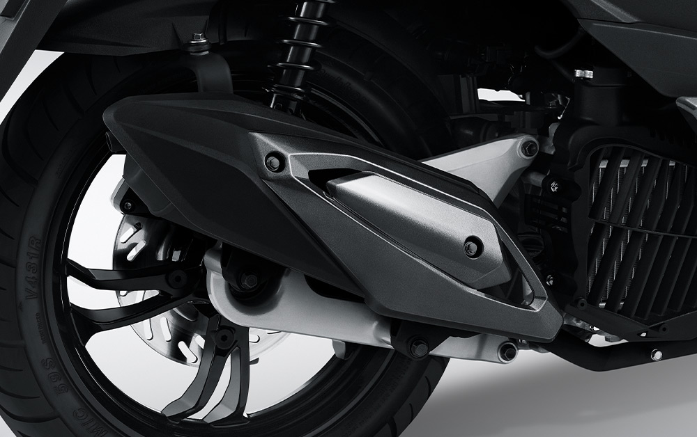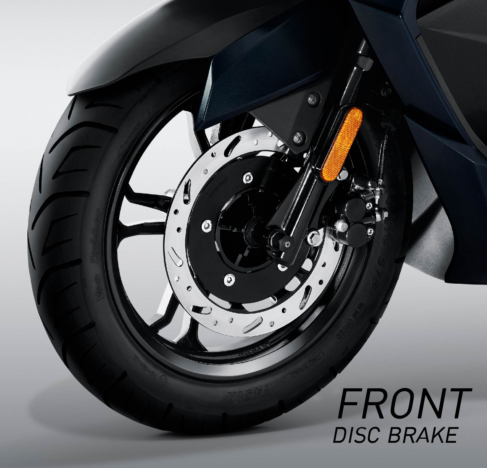 Bahagian roda dipasangkan rim aluminium 14 inci yang dibalut tayar 100/90 di depan dan 110/80 (belakang). Skuter ini memiliki berat bersih 150kg dan enjin dipacu sistem tali sawat untuk menggerakkan roda belakang. Kapasiti tangki minyak mampu mengisi petrol sebanyak 7.5 liter.
