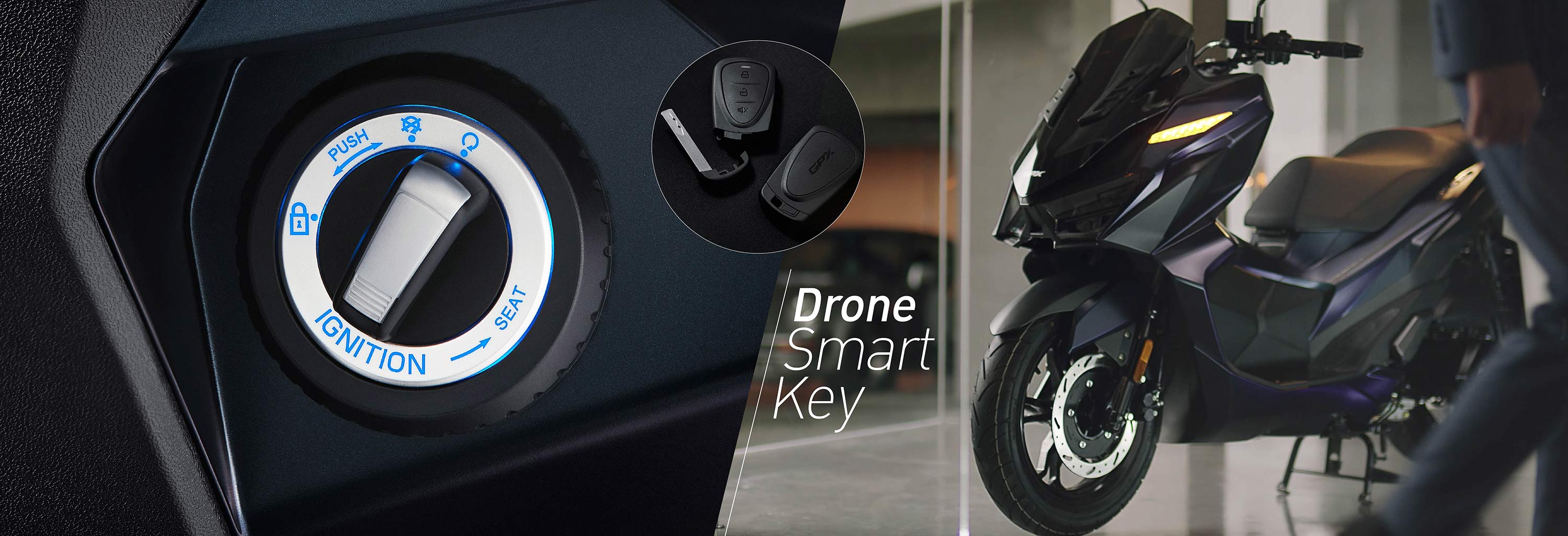 SYM berpengalaman luas lebih 60 tahun dalam menghasilkan enjin automatik. Drone (2020) dijana enjin 4-lejang silinder tunggal 150cc penyejukan cecair dengan teknologi suntikan bahan api (FI), manakala kotak gear jenis CVT. Setakat ini, tiada maklumat mengenai output kuasa atau tork.