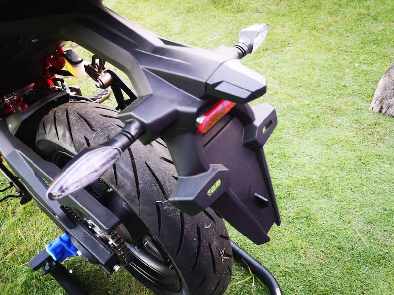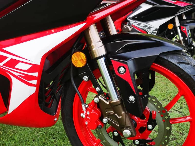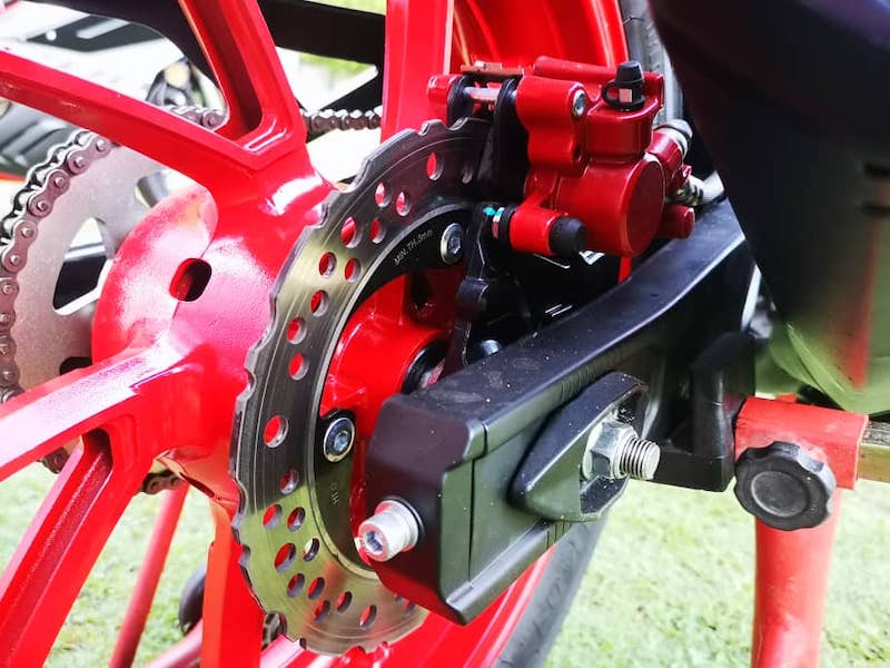 - Bahagian roda menggunakan brek cakera tunggal 276mm dengan kaliper dwi-piston di depan dan cakera tunggal 220mm dengan kaliper piston tunggal (belakang).