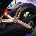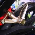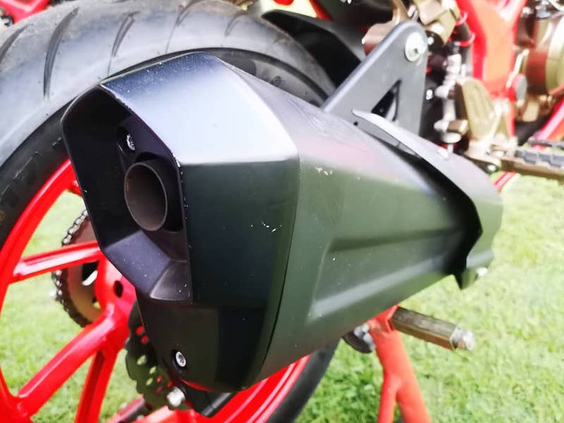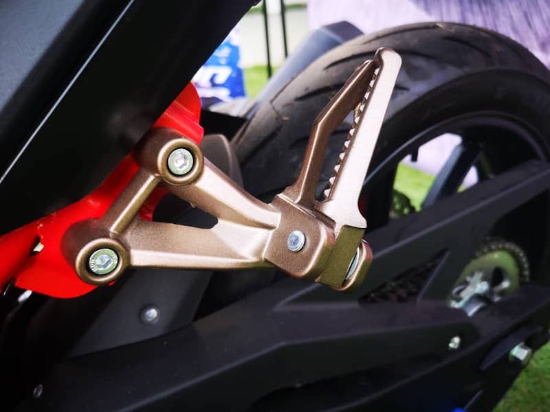 - Sistem ekzos juga bergaya sport dengan peg kaki aluminium emas.