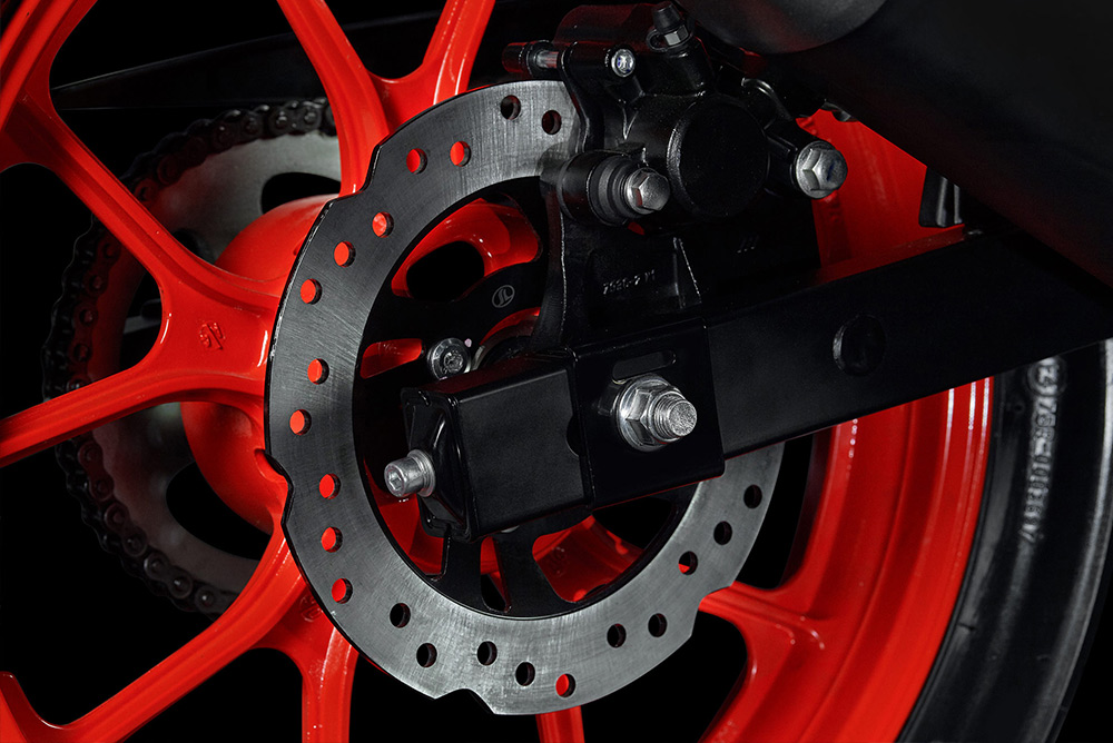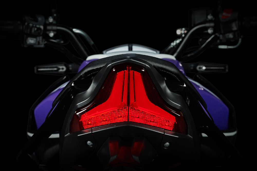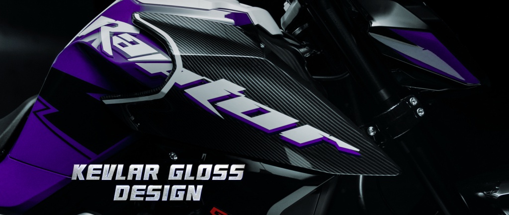 Persamaan itu dapat dilihat menerusi rekabentuk panel sisi tangki @ shroud tajam, bentuk belakang minimalis dan lampu utama sporty. Malah grafik strip dan warna badan yang disembur kemasan karbon kevlar membuatkan naked bike tampak agresif. Sayangnya, ia menggunakan casis diamond, kalau trellis pasti lebih mengancam.