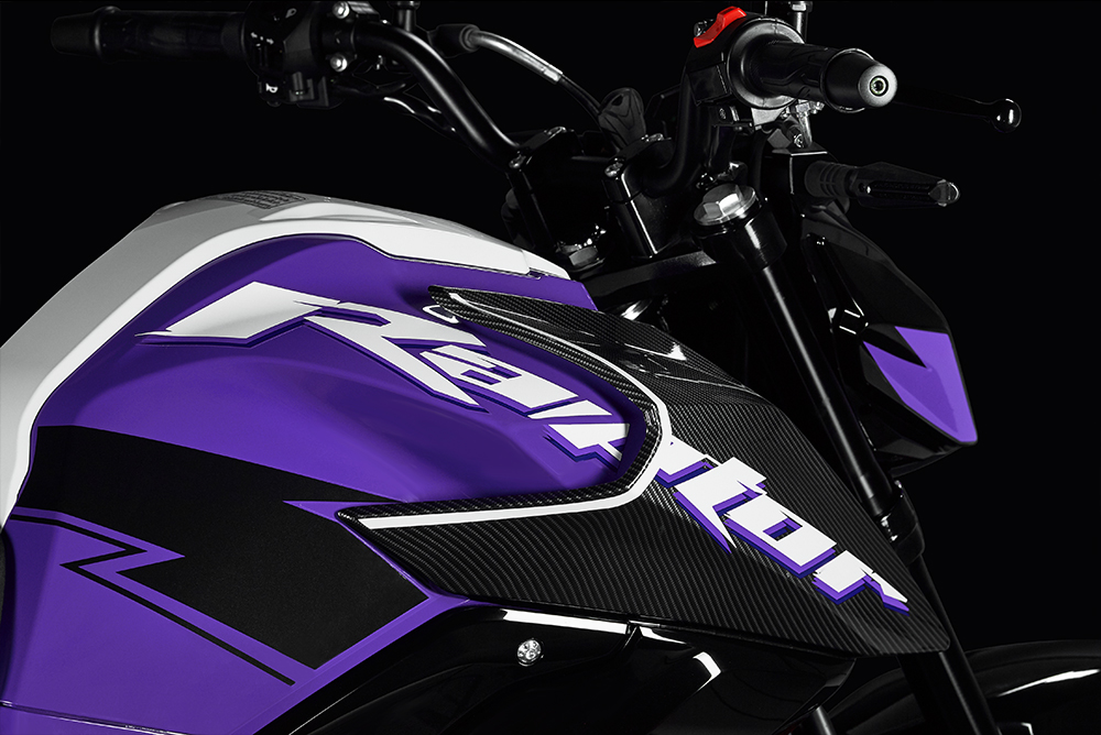 Dengan berat 135kg, Raptor 180 memiliki panjang 2,020mm, lebar 800mm, dan tinggi 1,310mm serta jarak roda 1,360mm, manakala ketinggian pelana 820mm. Ada tiga pilihan warna merah ditawarkan: hitam, putih dan ungu. Harga pula 59,500 baht (RM8,070).