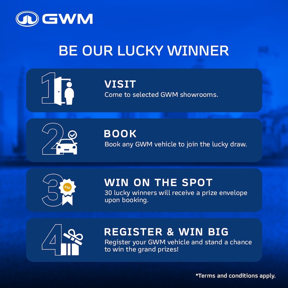 Sepanjang tujuh hujung minggu kempen, pelanggan yang menempah kenderaan GWM di bilik pameran sah berpeluang menyertai peraduan ‘Merdeka Book & Win’.