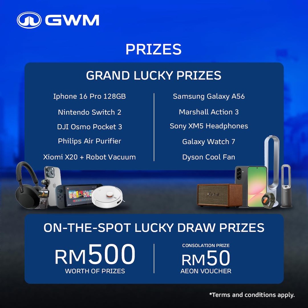 Sempena bulan kemerdekaan, GWM Malaysia turut menawarkan tawaran istimewa, pakej nilai tambah dan penjimatan masa terhad untuk semua model GWM yang menjadikan pemilikan kenderaan jenama itu lebih berbaloi berbanding sebelum ini.