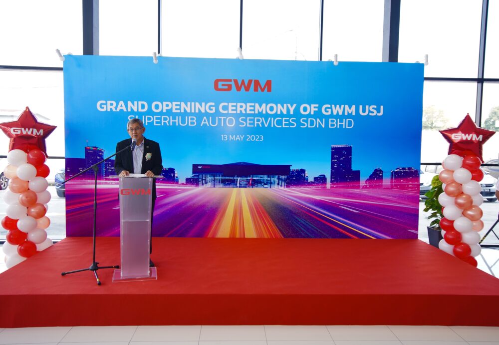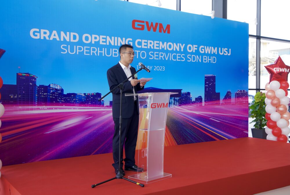 Pengarah Urusan GWM Malaysia, Mike Cui merasmikan majlis perasmian besar-besaran Superhub 4S baharu yang menawarkan perkhidmatan jualan, servis, alat ganti dan kemudahan baik pulih badan dan cat.