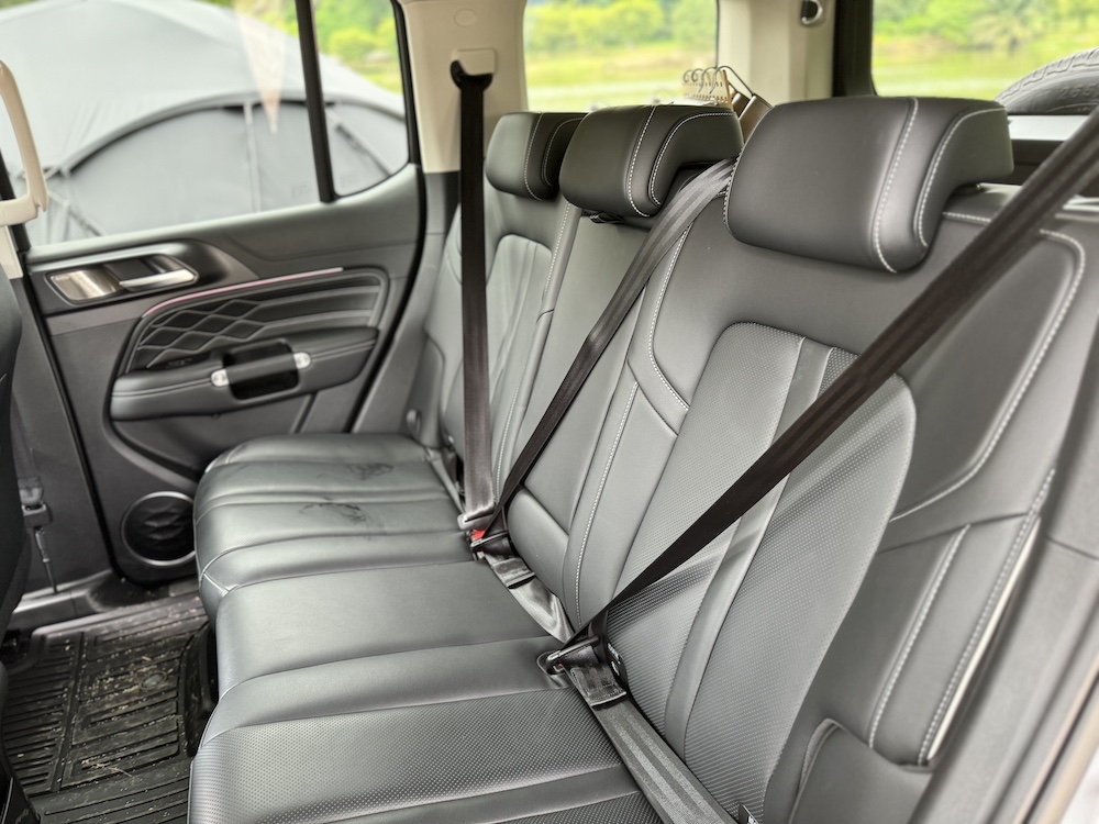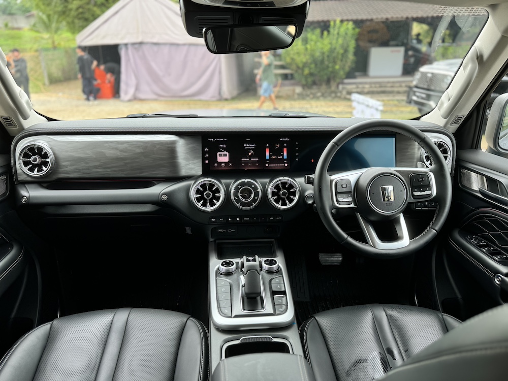 - Ruang kabin menggunakan upholsteri kulit Nappa hitam, kerusi pemandu boleh laras elektrik 8-tetapan dengan fungsi urut, dan unit infotainment dwi-skrin 12.3 inci yang dilengkapi konektiviti Apple CarPlay dan Android Auto.
