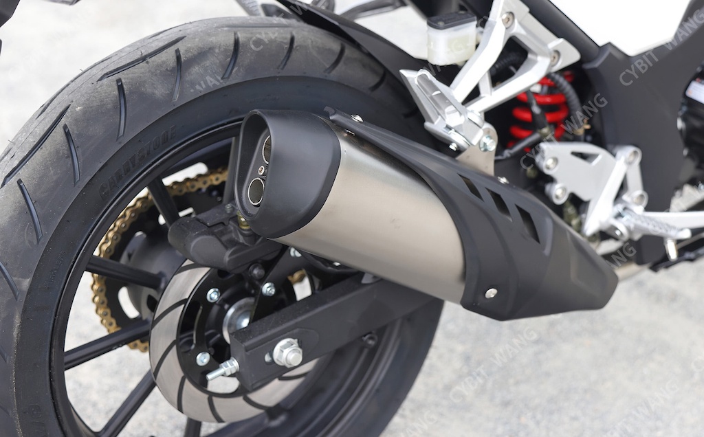 - Sistem suspensi menggunakan unit fork teleskopik di depan dan monoshock di belakang, manakala brek jenis cakera kembar di depan dan cakera tunggal di belakang. Bagaimanapun, tiada Sistem Brek Anti-Kunci (ABS) dilengkapkan.