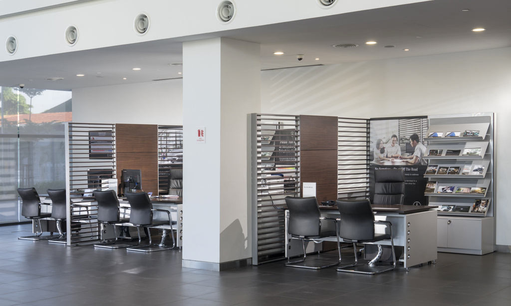 Ia mampu mempamerkan sehingga sembilan unit kenderaan pada satu masa sama. Manakala bahagian servis memiliki 16 ruang termasuk semburan cat dan mampu menyenggara sehingga 510 unit kenderaan sebulan.