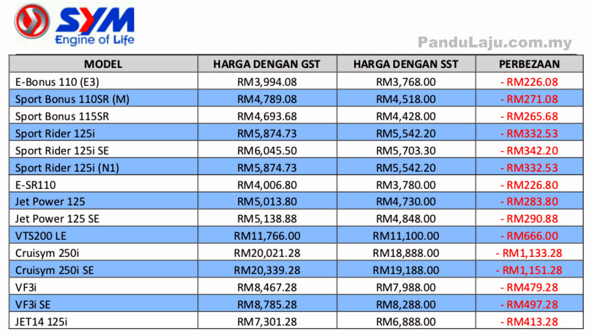 SUSULAN pelaksanaan Cukai Jualan dan Perkhidmatan (SST) berkuat kuasa pada 1 September 2018, Mforce Bike Holdings Sdn Bhd mengumumkan harga baharu untuk produk jenama Benelli, Keeway, SMSport dan Brixton.