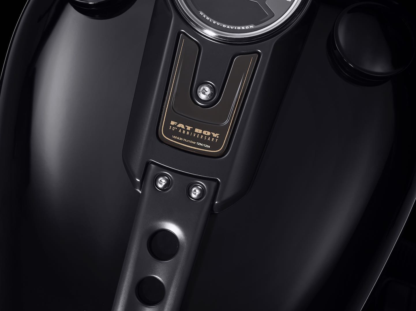 Fat Boy 30th Aniverssary diberikan dominasi warna hitam dengan sedikit kemasan tembaga. Model ini dibina berasaskan platform Softail (2018) dan dipacukan enjin Milwaukee-Eight 114, manakala harga jualan AS$21,949 (RM90,900).