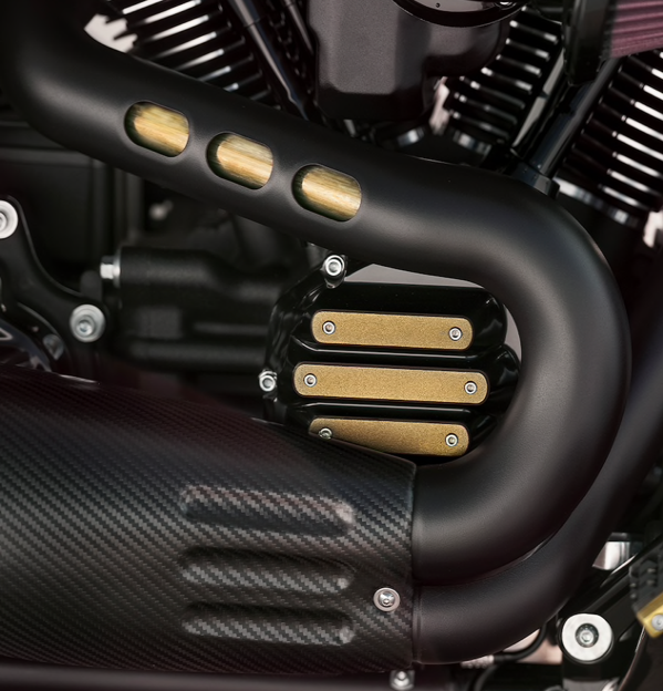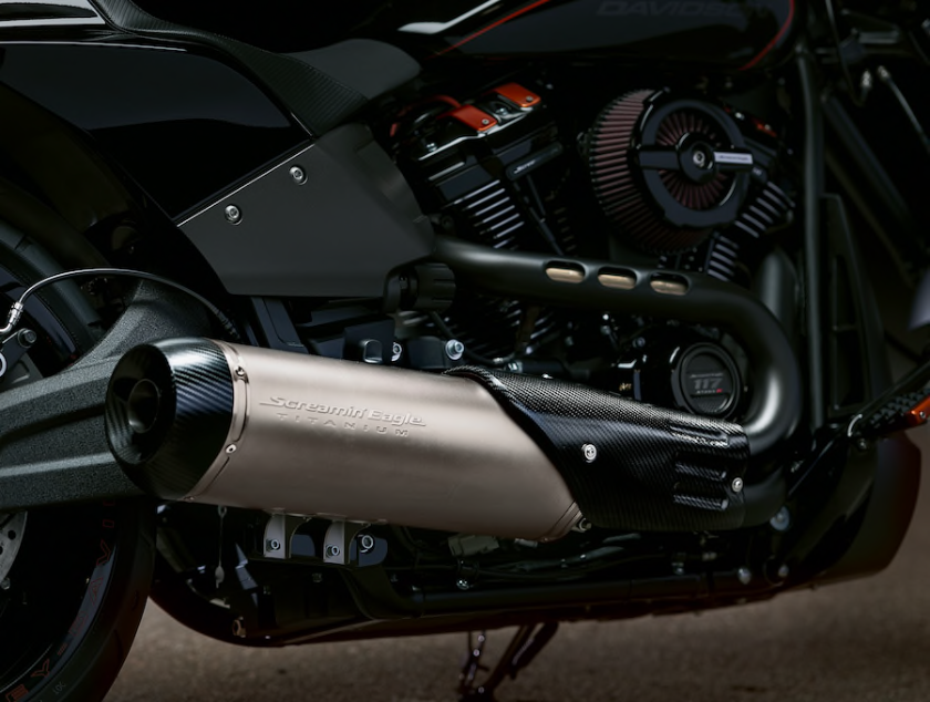 Ambilan udara menghadap ke depan diilhamkan daripada jentera juara dunia drag, Screamin’ Eagle/Vance & Hines dan direka untuk meningkatkan aliran udara ke enjin. Ekzos 2-in-1 ditala bagi menghasilkan bunyi deruman lebih sedap didengar dan direka untuk memaksimumkan sudut miring.