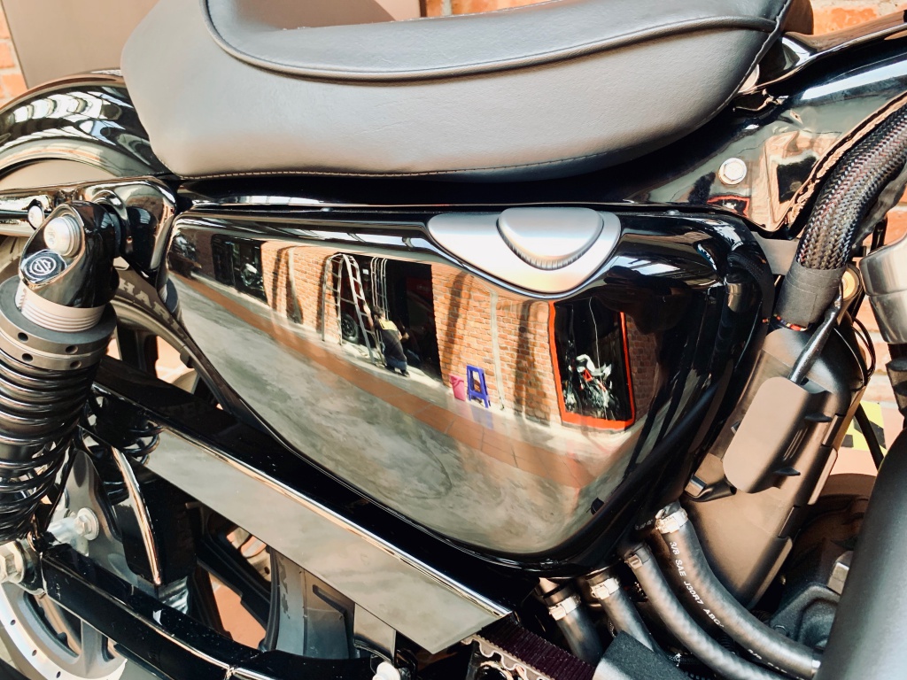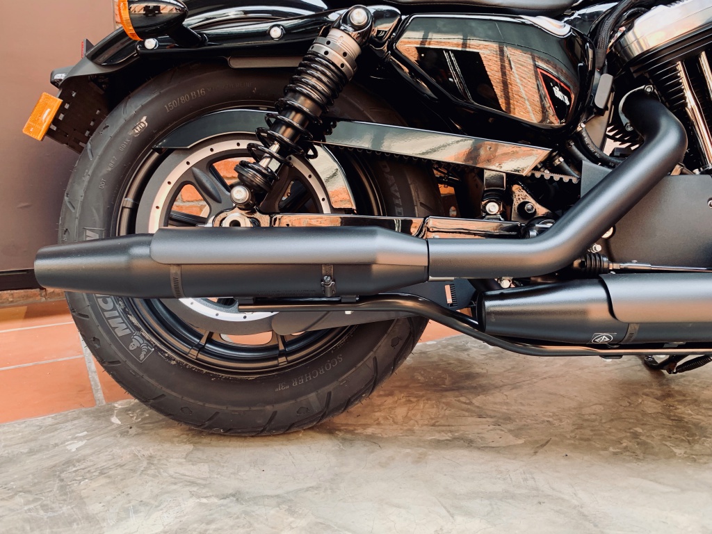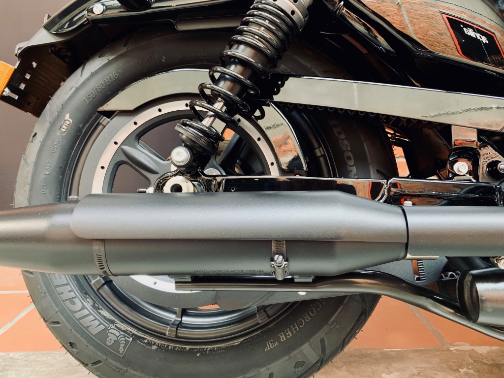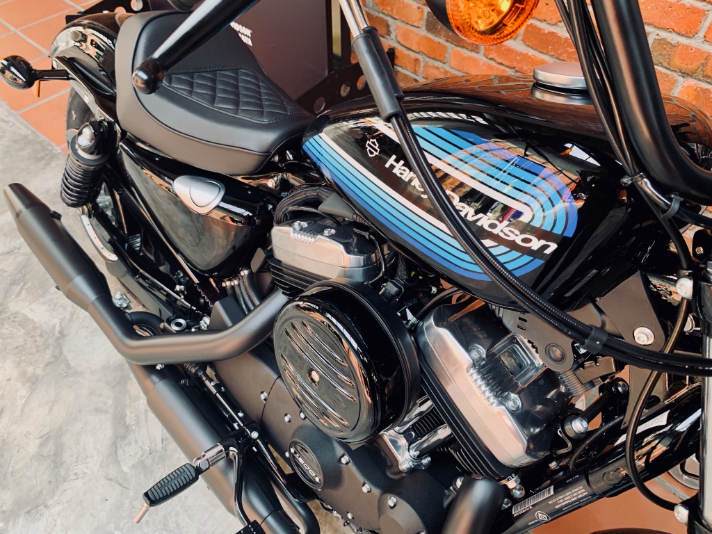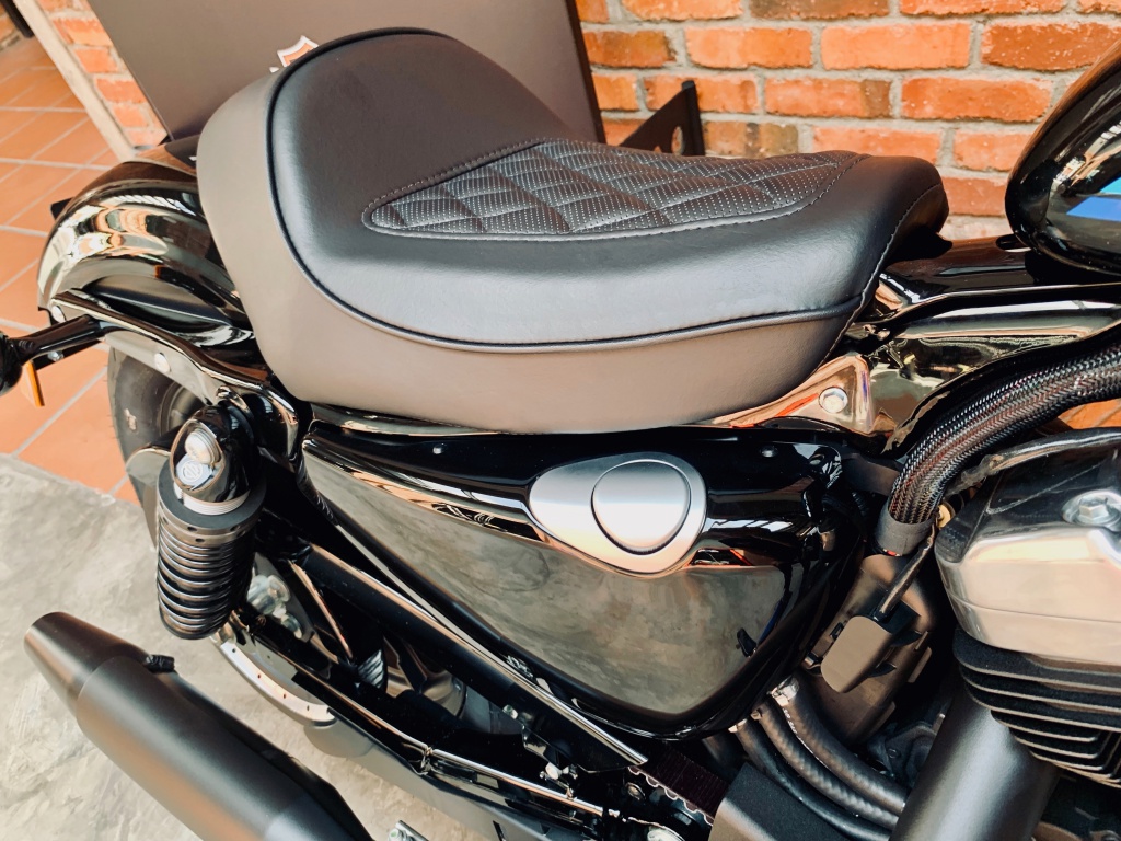 Bentuk pelana Cafe Solo memberikan sokongan secukupnya untuk punggung penunggang, terutama apabila tendangan tork berlaku. Saiz tangki minyak 12 liter yang dihiasi grafik jalur pelbagai warna menyerlahkan identiti Sporster dengan padanan kemasan serba hitam pada enjin.