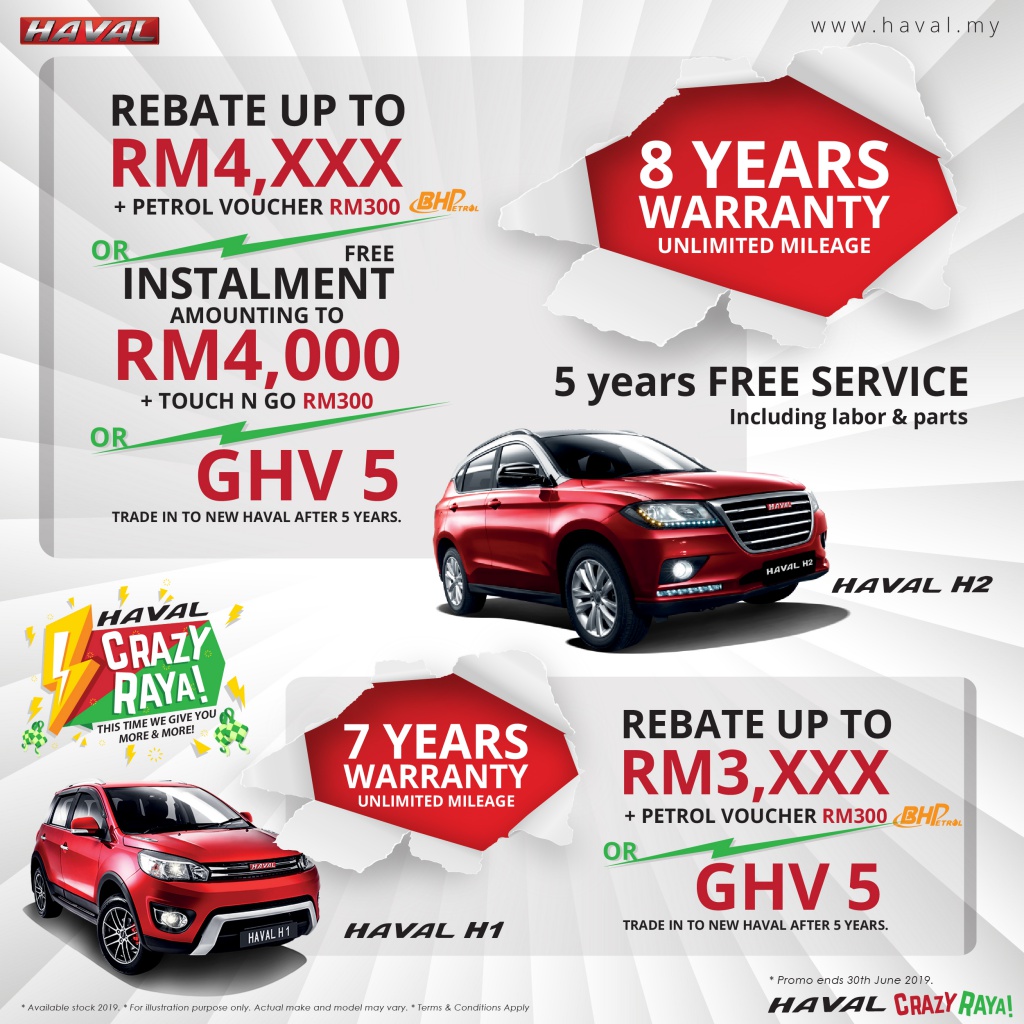 SEMPENA sambutan Aidilfitri yang bakal menjelang, termasuk meraikan jualan 5 juta unit kenderaan Haval seluruh dunia, Haval Malaysia melancarkan kempen Haval Crazy Raya.