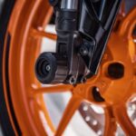 - Menggunakan sistem suspensi WP APEX untuk unit fork terbalik (USD) 43mm di depan dan monoshock boleh laras prabeban.