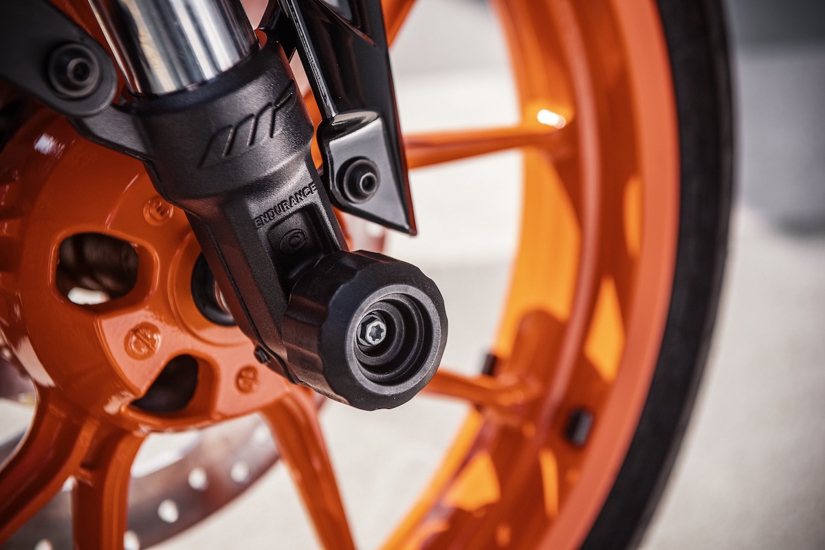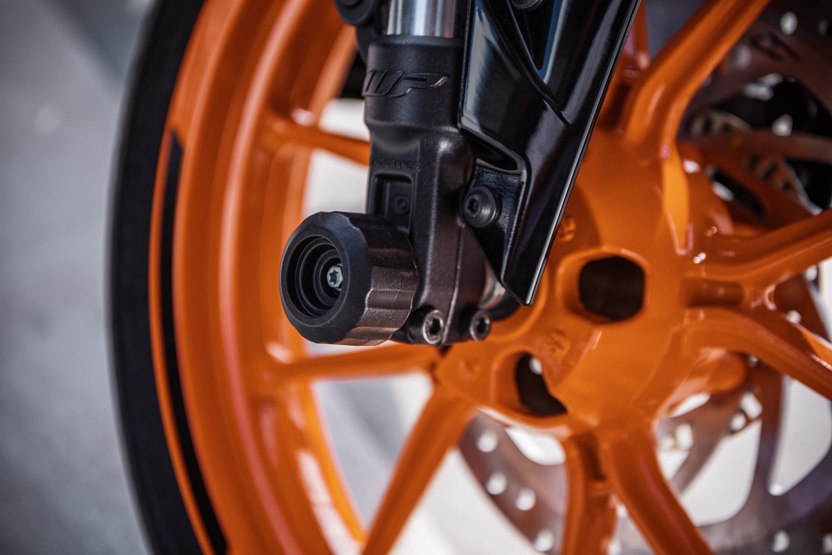 - Menggunakan sistem suspensi WP APEX untuk unit fork terbalik (USD) 43mm di depan dan monoshock boleh laras prabeban.