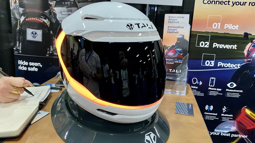 SYARIKAT dari Perancis, TALI Connected (TALI), memperkenalkan produk helmet pintar pada Pameran Elektronik Pengguna (CES) 2020 di Las Vegas, Nevada di Amerika Syarikat yang dilengkapi ciri inovatif seperti konektiviti Bluetooth, lampu signal belok dan lampu brek LED.