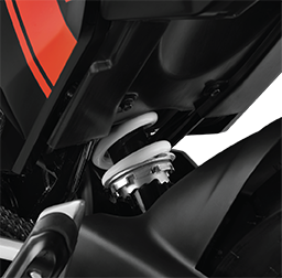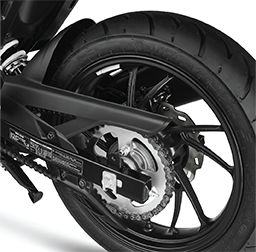 - Suspensi jenis fork teleskopik dan monoshock boleh laras prabeban 8-tetapan. Sistem brek menggunakan unit brek cakera tunggal di depan dan belakang yang dipadankan Sistem Brek Anti-Kunci (ABS).