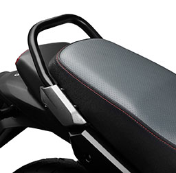 - Rupa depan menggunakan set lampu utama LED penuh dengan panel fairing depan kecil. Gaya scrambler dapat dilihat menerusi kehadiran kowl enjin dan pelindung haba enjin, manakala di belakang dipasangkan bar bonceng.