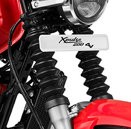 - Fork depan memiliki jarak travel panjang untuk keperluan off-road ringan selain mengekalkan gaya neo-retro.