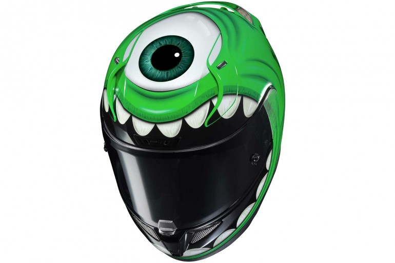 Pasukan pakar-takut daripada Monster Inc mencipta karakter makhluk mata satu, Mike Wazowski sebagai grafik utama helmet HJC. Hasilnya ialah helmet dengan grafik mata satu yang cukup liar dan menyilau mata hingga mampu mengatasi kelibat helmet lain di jalanan atau trek.