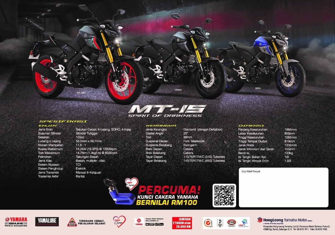 BACA >>> Yamaha MT-15 Sudah Ada di Kedai, Harga (Cadangan) RM11,988!
