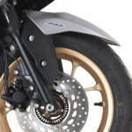 - Sistem suspensi kekal dengan fork teleskopik di depan dan absorber kembar untuk varian Standard. Jika memilih varian ABS, pembeli akan menerima ekstra tabung absorber.