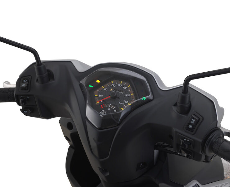- Panel meter jenis analog memaparkan maklumat seperti spidometer, bar petrol, jarak tunggangan dan beberapa indikator amaran sebelah kiri dan kanan. Ada soket USB untuk mengecas peranti pintar.
