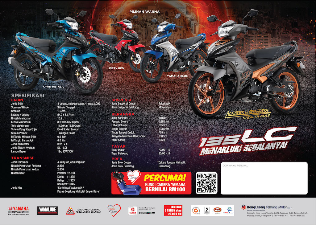 Setiap pembelian juga dipakejkan bersama Kunci Brek Cakera Yamaha bernilai RM100 secara percuma.