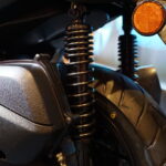 - Sistem suspensi fork teleskopik konvensional di depan dan dwi-absorber di belakang.