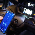 - Panel meter kedua dilengkapi sistem navigasi GPS Garmin dan sambungan aplikasi Yamaha Y-Connect menggunakan sambungan Bluetooth telefon pintar.