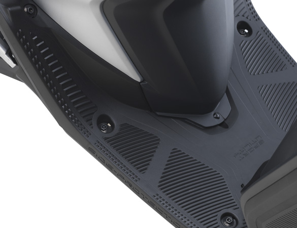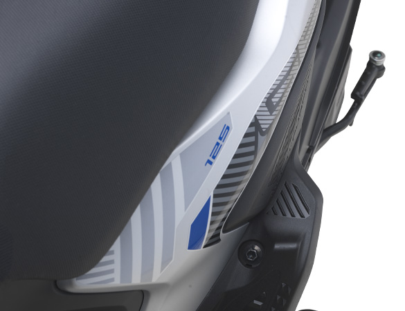 Peg kaki pembonceng mesra kanak-kanak yang diposisikan lebih tinggi. Panel meter analog memaparkan maklumat seperti spidometer, bar petrol, jarak tunggangan dan beberapa indikator amaran sebelah kiri dan kanan. Juga disediakan soket kuasa untuk mengecas peranti pintar.