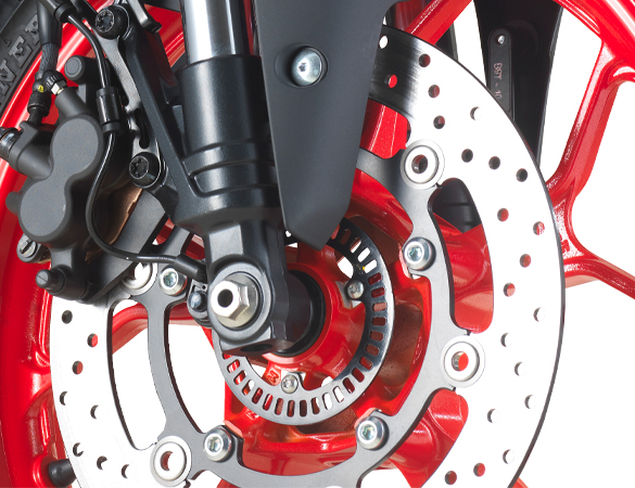 - Sistem brek cakera tunggal 282mm dengan kaliper 2-piston di depan dan cakera tunggal di belakang, serta dilengkapkan Sistem Brek Anti-Kunci (ABS) dwi saluran pada kedua-dua roda.